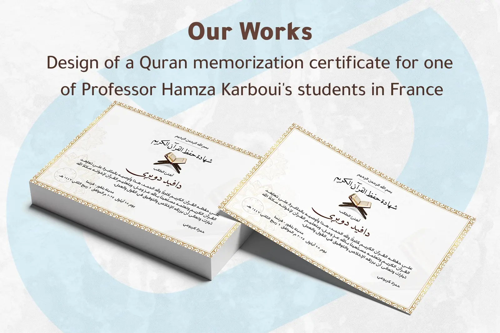 Design of a Quran memorization certificate for one of Hamza Karboui’s students in France