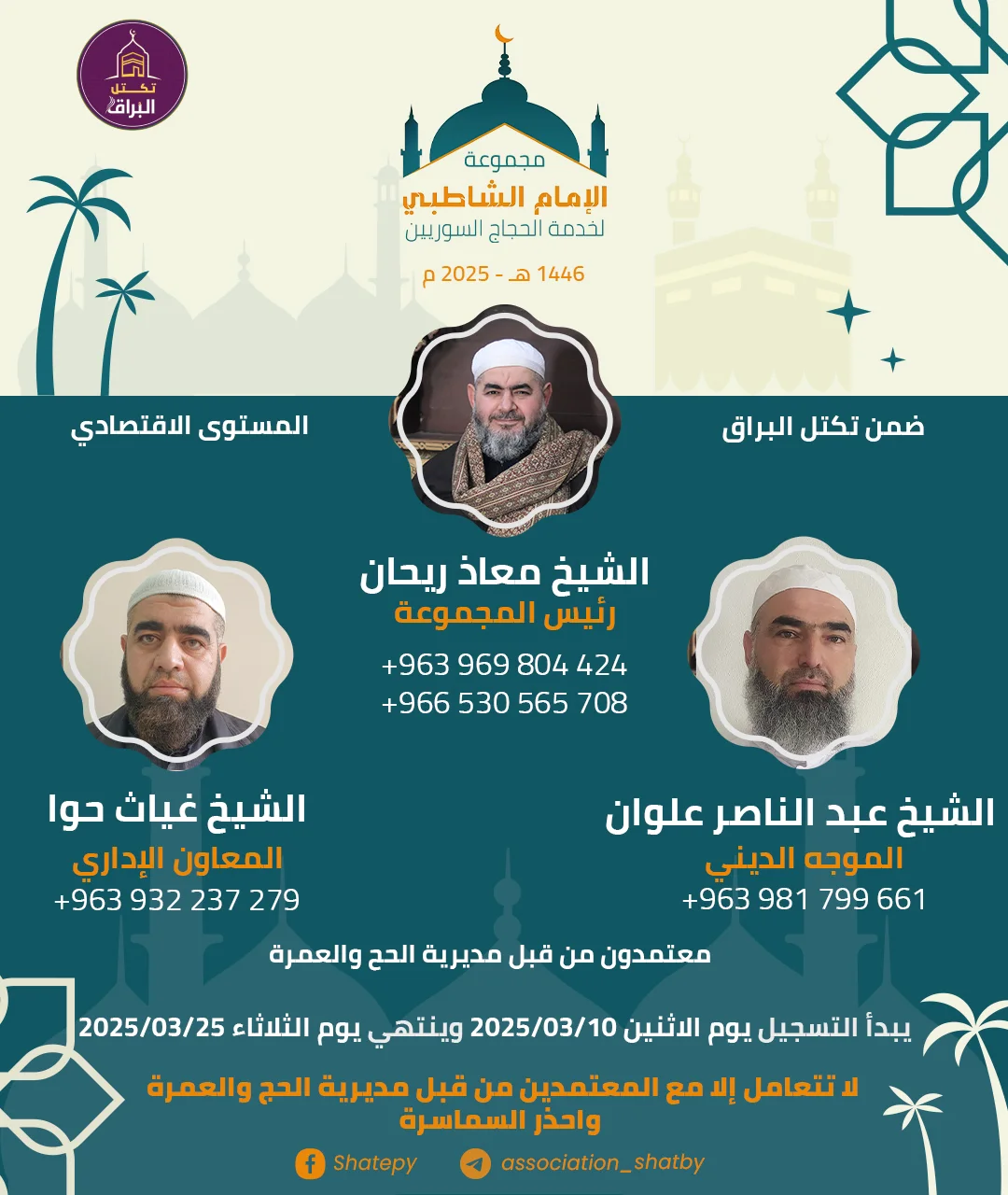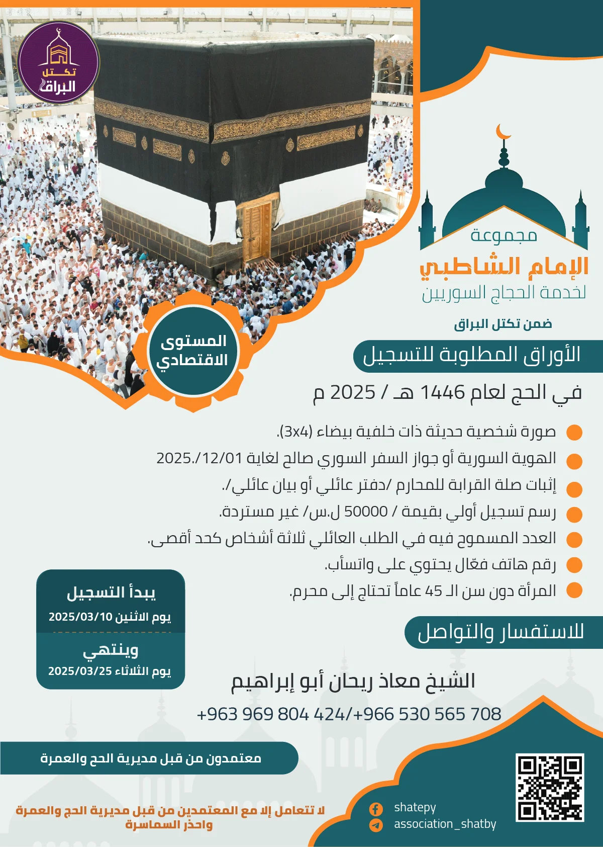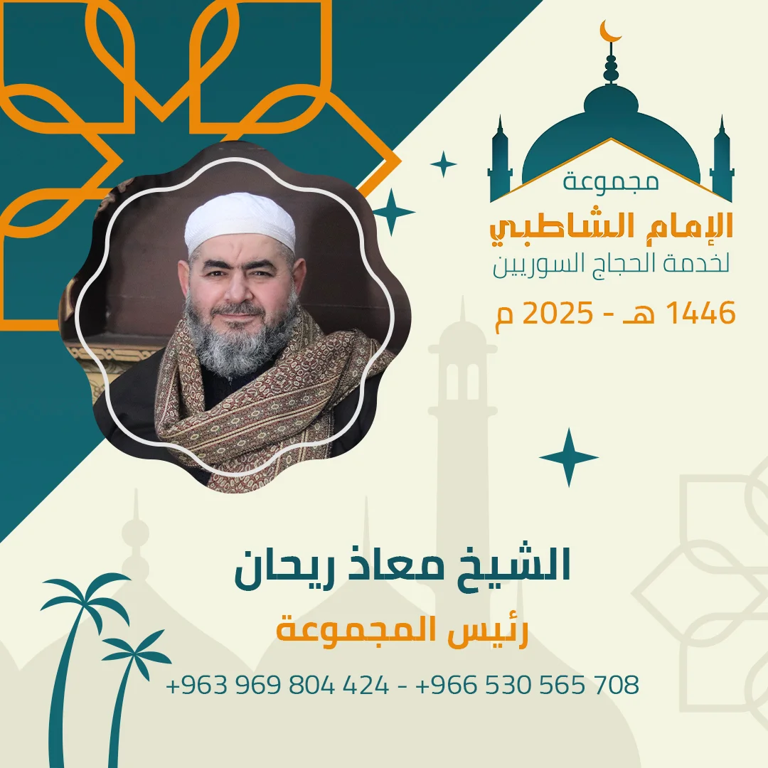 Designing advertising flyers for the Imam Al-Shatibi Group to serve Syrian Hajj.