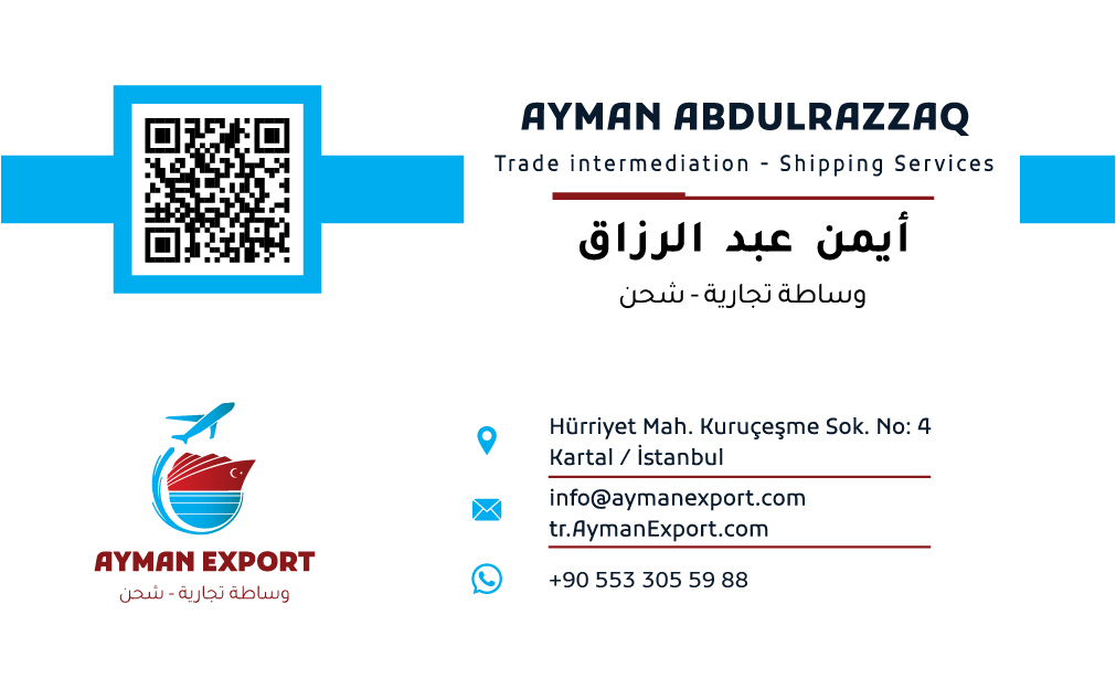 تصميم كرت فيزيت بوجهين لشركة AymanExport في مدينة اسطنبول – تركيا.