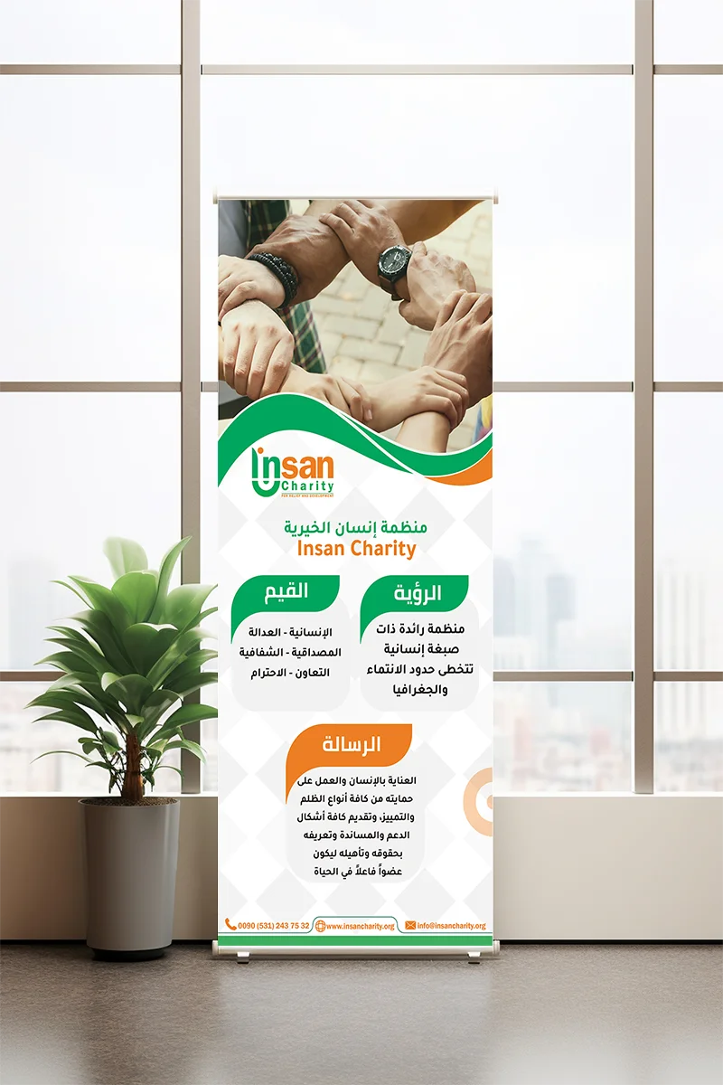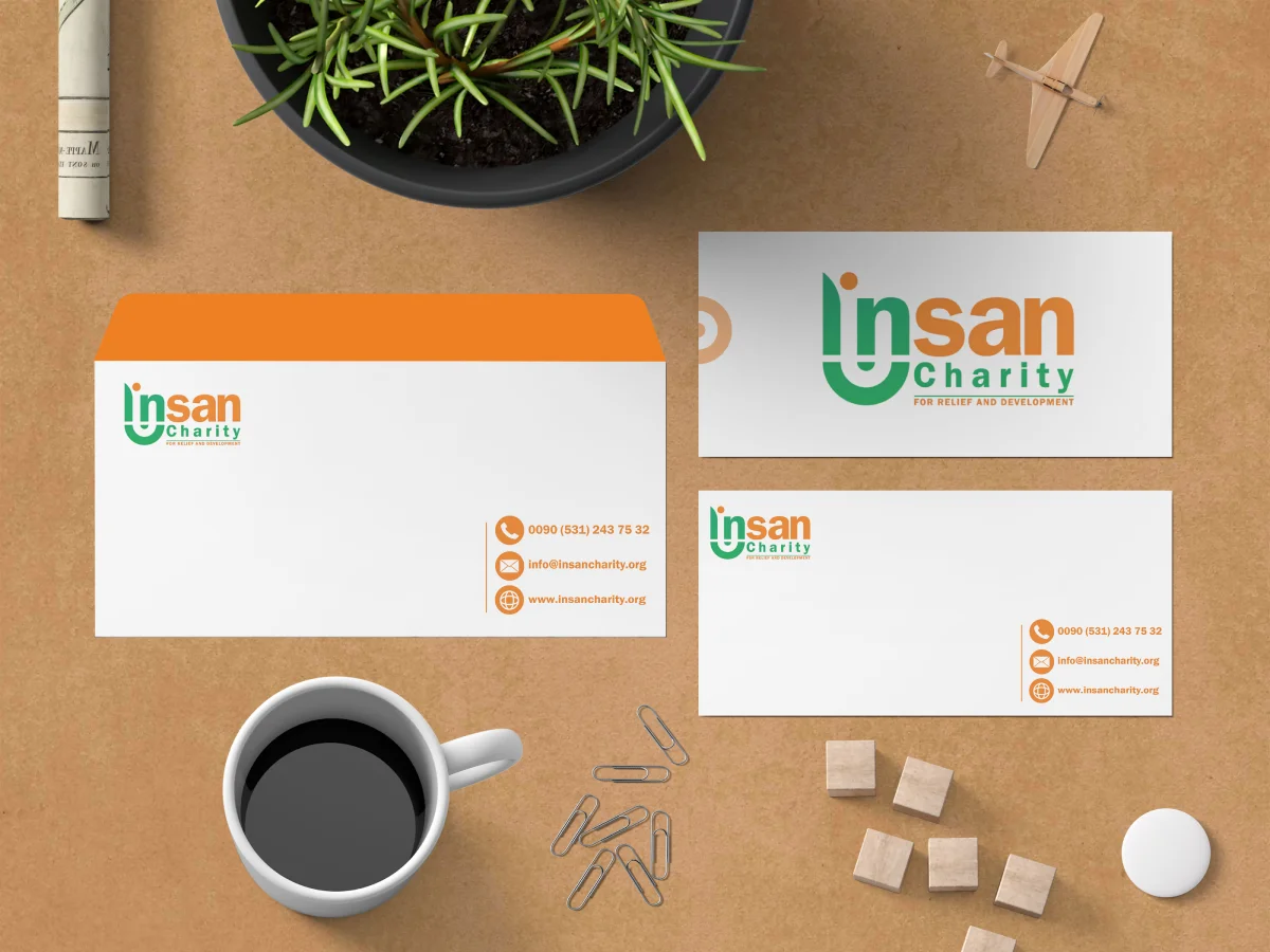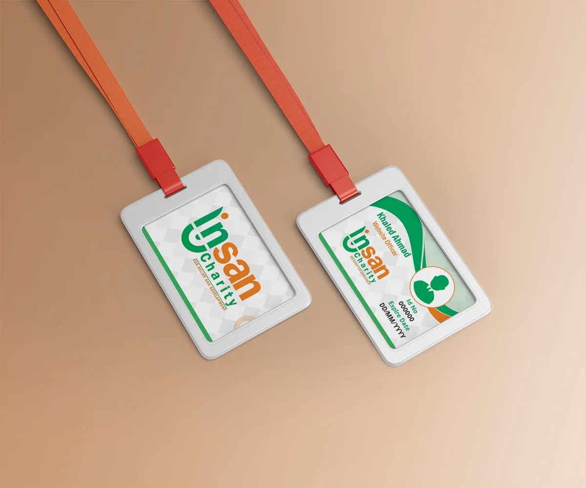 تطوير وتصميم عناصر الهوية البصرية لمنظمة إنسان الخيرية، وتشمل: